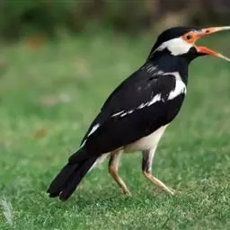 斑椋鸟:是中等体型的黑白色椋鸟,体长24厘米。头顶、头侧、翼斑、腰及腹部白色,喉、胸及上体余部黑色,…