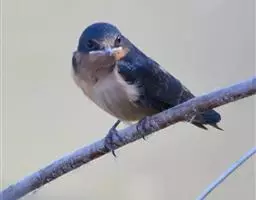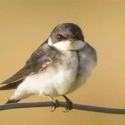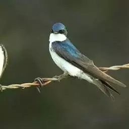 线尾燕,腹部接近纯白色,背部则为深紫色,头部的羽毛是栗色的。
