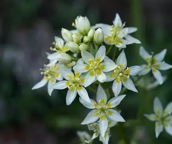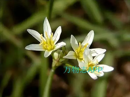 多年生草本,植株高30-50厘米;鳞茎小葱头状,外层鳞茎皮黑褐色,有时上部稍撕裂为纤维。叶基生,条形,长12-33厘米,宽2-8毫米,在花葶下部常有1-2枚短叶。总状花序或圆锥花序具疏松的花;花梗长7-20毫米,基部有苞片;花被片绿白色,倒卵状矩圆形至矩圆形,长6-9毫米,宽约2.5毫米,内面基部上方有一顶端2裂的肉质腺体;雄蕊稍短于花被片,花丝向下部逐渐扩大,花药近肾形;子房圆锥形,长约4毫米;花柱3,近果期稍伸出花被外,外卷。蒴果圆锥形,长约15毫米。种子近矩圆形,长约5毫米,有狭翅。