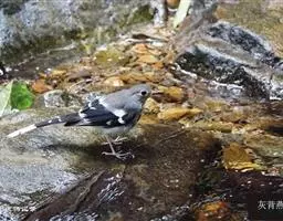 赭红尾鸲:小型鸟类,体长13-16厘米。雄鸟前额、头侧、颈侧、颏至胸概黑色,头顶和背灰色或黑色,…