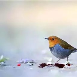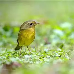 日本歌鸲:体型小似麻雀,但羽毛颜色较为美丽。嘴细长,嘴须不发达;翅短圆,上体草黄褐;雄鸟喉部橙棕色,…