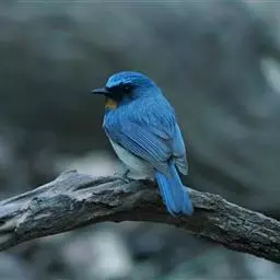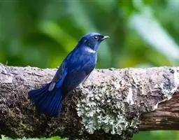 山蓝仙鹟:小型鸟类,体长13-15厘米。雄鸟额基和眼先黑色,颏橙棕色,仅颏尖为蓝黑色,…
