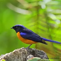 小仙鹟:体长11-13厘米,是一种深色鹟。雄鸟深蓝,脸侧及喉黑,臀白,前额、颈侧及腰为闪辉蓝色。…