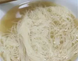 2.细拉面放入沸水中氽烫约1分钟捞出放入碗中。