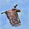 白头海雕(学名:Haliaeetus leucocephalus)又名美洲雕。是大型猛禽,成年海雕体长可达1米,翼展2米多长。眼、嘴和脚为淡黄色,头、颈和尾部的羽毛为白色,身体其他部位的羽毛为暗褐色,十分雄壮美丽。主要栖息在海岸、湖沼和河流附近,以大马哈鱼、鳟鱼等大型鱼类和野鸭、海鸥等水鸟以及生活在水边的小型哺乳动物等为食,飞行能力很强。上喙边端具弧形垂突,适于撕裂猎物吞食;基部具蜡膜或须状羽;翅强健,翅宽圆而钝,扇翅及翱翔飞行,扇翅节奏较隼科慢;跗跖部大多相对较长,约等于胫部长度。是北美洲所特有物种。1782年6月20日,美国国会通过决议立法,选定白头海雕为美国国鸟。