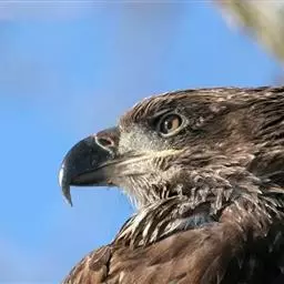 白头海雕眉骨突起,使它们外表看来很是凶猛。这种突起和瞬膜一样,可以在烈日下遮护雕眼,还能为雕眼挡风蔽尘。白头海雕飞下来往树上栖息时,碰断的树枝树条也许会弹起来,突起的眉骨就能起到保护雕眼的作用。此外,突起的眉骨还能使雕眼免受挣扎中猎物的伤害。