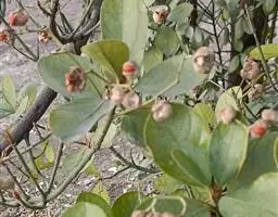 常绿灌木或小乔木,高达8米。 叶光亮革质,倒卵形或窄长椭圆形,长3-6厘米,宽2-3厘米。 聚伞花…