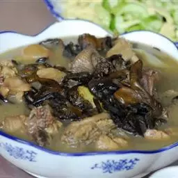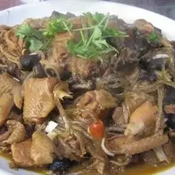 小鸡炖蘑菇是一道东北炖菜。通常是用干蘑菇、鸡肉和粉条一同炖制而成。榛蘑可以衬托出鸡肉的鲜香,粉条滑…