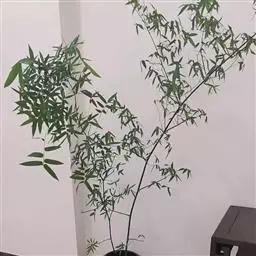 凤尾竹 Raeusch. ex Schult. ’Fernleaf’ R. A. Young)是禾本科,簕竹属孝顺竹的变种。植株较高大,杆高可达6米,竿中空,小枝稍下弯,下部挺直,绿色;竿壁稍薄;节处稍隆起,无毛;叶鞘无毛,纵肋稍隆起,背部具脊;叶耳肾形,边缘具波曲状细长繸毛;叶舌圆拱形,叶片线形,上表面无毛,下表面粉绿而密被短柔毛,小穗含小花,中间小花为两性;外稃两侧稍不对称,长圆状披针形,先端急尖;内稃线形,脊上被短纤毛,花药紫色,子房卵球形,羽毛状。成熟颖果未见。原产中国,华东、华南、西南以至台湾、香港均有栽培。凤尾竹喜温暖、湿润和阳光充足的环境,耐寒。宜土层深厚、肥沃、疏松的微酸性壤土。该种观赏价值较高,宜作庭院丛栽,也可作盆景植物。全草或根入药,味淡、微苦,性寒,有清热利湿、凉血止血、消肿解毒功效,可治痢疾、泄泻等多种病症。凤尾