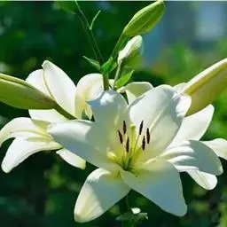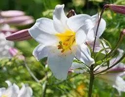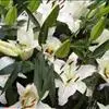 百合花的种头是由近百块鳞片抱合而成,古人视为“百年好合”、“百事合意”的吉兆。故历来许多情侣在举行婚礼时都要用百合来做新娘的捧花。除了这种好意头之外,它那副端庄淡雅的芳容确实十分可人。它植株挺立,叶似翠竹,沿茎轮生,花色洁白,状如喇叭,姿态异常优美,能散出隐隐幽香,被人誉为“云裳仙子”。故在国际花卉市场上长期走俏,历久不衰。