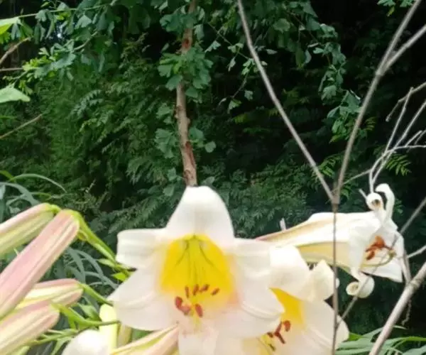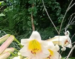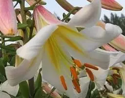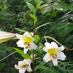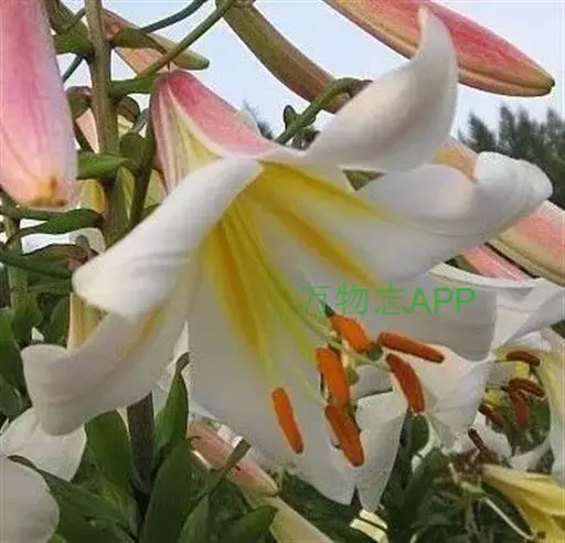岷江百合(拉丁学名:Lilium regale Wilson),百合科百合属植物,又叫王百合、千叶百合,俗称崖半花、喇叭花、夜香花。岷江百合的鳞茎宽卵圆形,高约5厘米,直径3.5厘米。