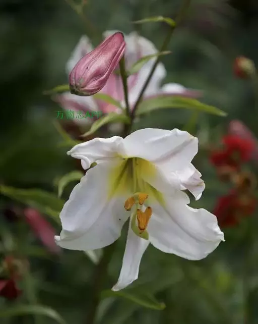 野百合是百合科百合属的多年生草本植物。鳞茎呈球形,鳞片呈披针形白色;茎高0.7-2米,…