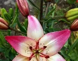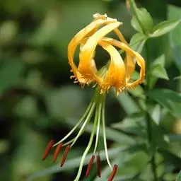 岷江百合是百合科百合属的多年生鳞茎草本植物。鳞茎宽卵圆形,鳞片披针形,茎有小乳头状突起;狭条形叶散生,…
