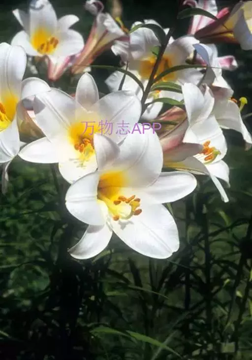青岛百合是百合科百合属的多年生草本植物;鳞茎近球形;鳞片披针形,白色,无节;叶轮生,…