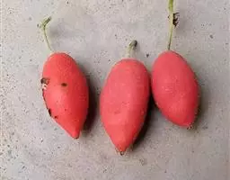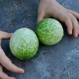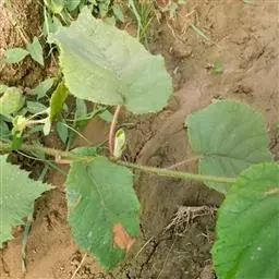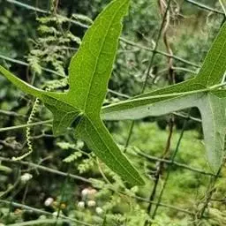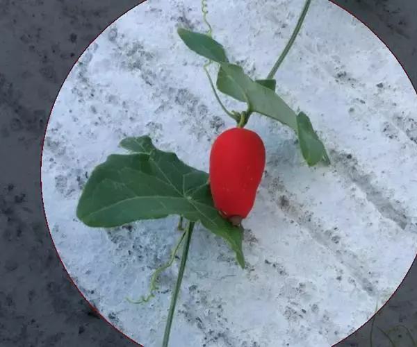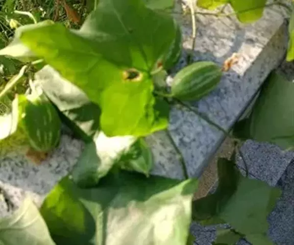 茅瓜又名:异叶马㼎儿。攀援草本,块根纺锤状,径粗1.5-2厘米。茎、枝柔弱,无毛,具沟纹。叶柄纤细,短,长仅0.5-1厘米,初时被淡黄色短柔毛,后渐脱落;叶片薄革质,多型,变异极大,卵形、长圆形、卵状三角形或戟形等,不分裂、3-5浅裂至深裂,裂片长圆状披针形、披针形或三角形,长8-12厘米,宽1-5厘米,先端钝或渐尖,上面深绿色,稍粗糙,脉上有微柔毛,背面灰绿色,叶脉凸起,几无毛,基部心形,弯缺半圆形,有时基部向后靠合,边缘全缘或有疏齿。卷须纤细,不分歧。雌雄异株。雄花:10-20朵生于2-5毫米长的花序梗顶端,呈伞房状花序;花极小,花梗纤细,长2-8毫米,几无毛;花萼筒钟状,基部圆,长5毫米,径3毫米,外面无毛,裂片近钻形,长0.2-0.3毫米;花冠黄色,外面被短柔毛,裂片开展,三角形,长1.5毫米,顶端急尖;雄蕊3,分离,着生在花萼筒基部,花丝纤细,无毛,长约3毫米,花药近圆形,长1.3毫米,药室弧状弓曲,具毛。雌花:单生于叶腋;花梗长5-10毫米,被微柔毛;子房卵形,长2.5-3.5毫米,径2-3毫米,无毛或疏被黄褐色柔毛,柱头3。果实红褐色,长圆状或近球形,长2-6厘米,径2-5厘米,表面近平滑。种子数枚,灰白色,近圆球形或倒卵形,长5-7毫米,径5毫米,边缘不拱起,表面光滑无毛。花期5-8月,果期8-11月。