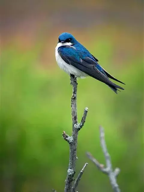 线尾燕,腹部接近纯白色,背部则为深紫色,头部的羽毛是栗色的。