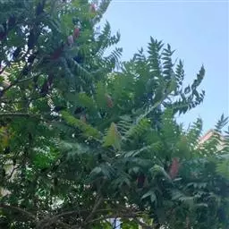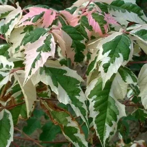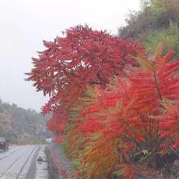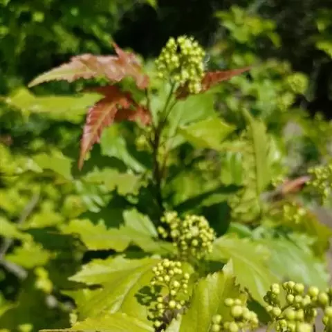 春、秋季叶红色,夏季叶紫红色。嫩叶红色,老叶终年紫红色。伞房花序,顶生,杂性花。花期4-5月。翅果,幼时紫红色,成熟时黄棕色,果核球形。果熟期10月。