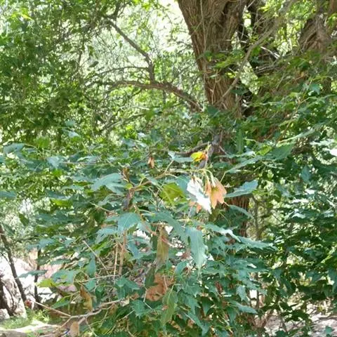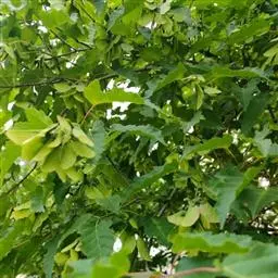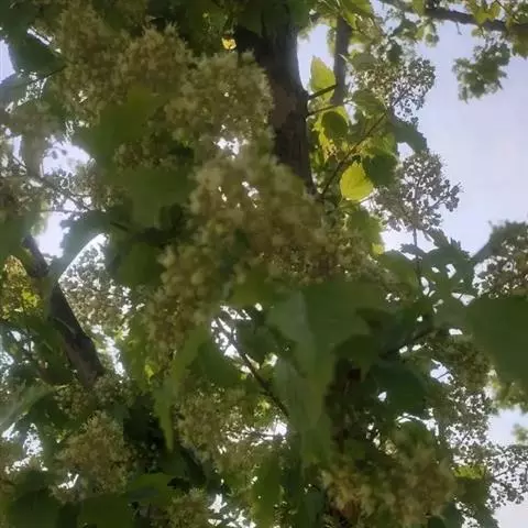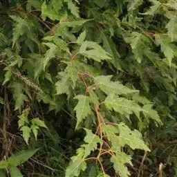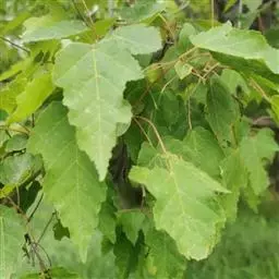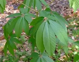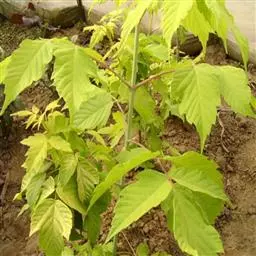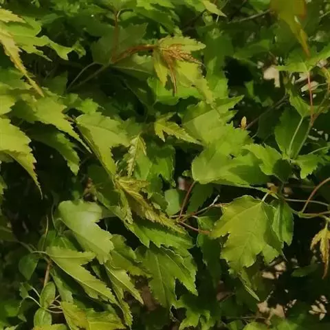 落叶小乔木。树姿开张,小枝细长。树皮光滑,呈灰褐色。单叶交互对生,常丛生于枝顶。叶掌状深裂,裂片5-9.裂深至叶基,裂片长卵形或披针形,叶缘锐锯齿。