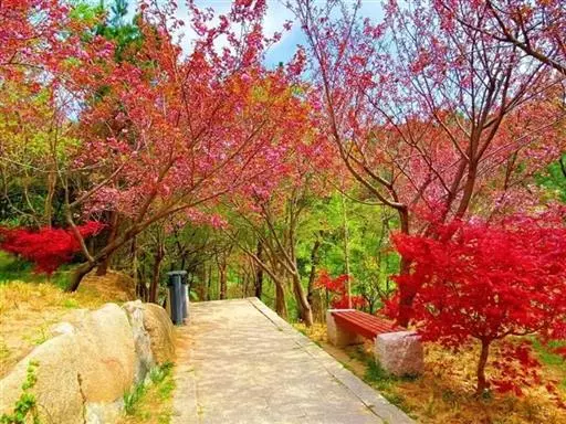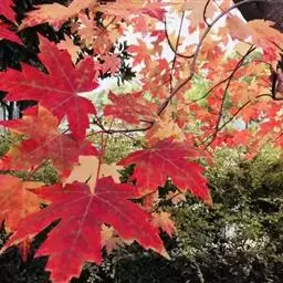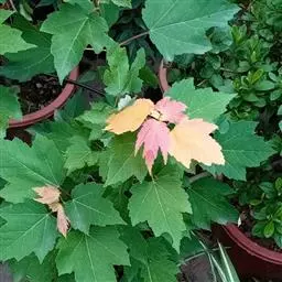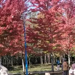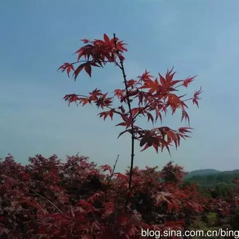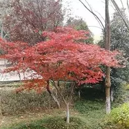 中国红枫最大的特点就是秋季变色由正常绿色变为红色,古人“十月霜叶红似火”,“霜叶红于二月花” 但是中国红枫大部分都是播种苗,变异性比较大.而且随地域的差异变色效果差异比较明显。甚至同一地方不同苗木之间差异也是很大的。而且变色色彩不是很鲜明.红色不是很正.且其间总会有杂色.观赏效果一般。