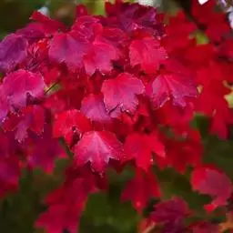 春季新叶泛红,与成串的红色花朵相映成趣;夏季枝叶成阴;秋季叶片为绚丽的红色,持续时间长。树型直立向上,树冠圆形。春天开红色小花,果有翅,红色。该树种生长迅速,是所有美国红枫品种中生长最快的品种。 习性特点: 适应性较强,耐寒、耐旱、耐湿。我国北京、河北、山东、辽宁、吉林、河南、陕西、安徽、江苏、上海、浙江、江西、湖南、湖北、云南、四川、新疆等地的气候均适宜,每年秋季纯正的改良红枫都能稳定地表现出绚丽的红叶效果,酸性至中性的土壤使秋色更艳。