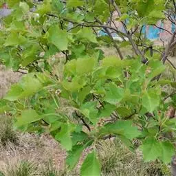 • 粉背黄栌叶卵圆形,较大,长3.5-10厘米,宽2.5-7.5厘米,无毛,但叶背显著被白粉;叶柄较长,…