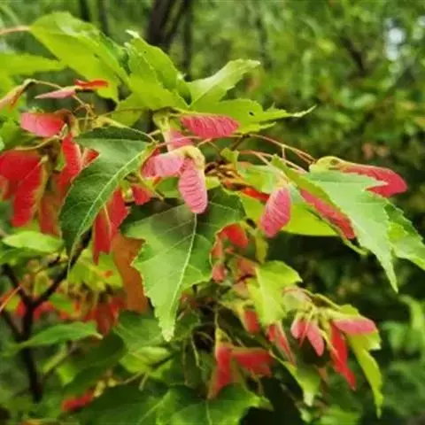 美国改良红枫是从红花槭中选育的园艺变种和红花槭与银白槭杂交的自由人槭中选育的园艺变种的总称,具有一系列的改良品种,是高大落叶乔木,高度18-25M,树冠椭圆,冠幅12-15M。   耐寒性强,耐-35℃,适应中性及微酸或微碱性土壤。生长速度较快,年平均生长80cm-120cm(视水土及土壤肥力)。春天开花,有红色花穗,种子为羽翅状果、颜色浅红。树叶成掌状,长约5-10cm, 春天幼芽浅红色,夏季碧绿,秋天为鲜红色,挂色期长、落叶晚。树干笔直,成深褐色,材质坚硬、纹理好。健康的美国改良红枫基本上不受病虫害的影响,其寿命为100年左右。