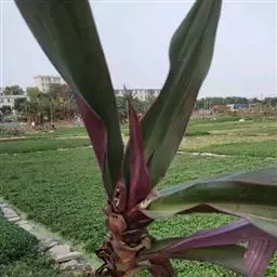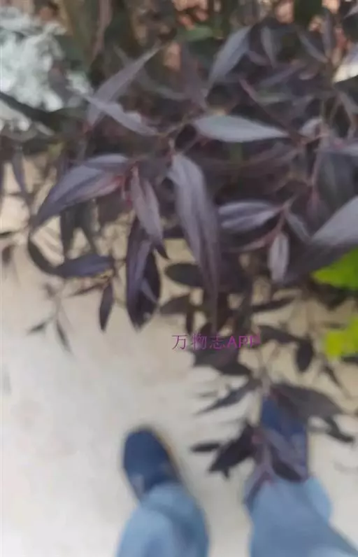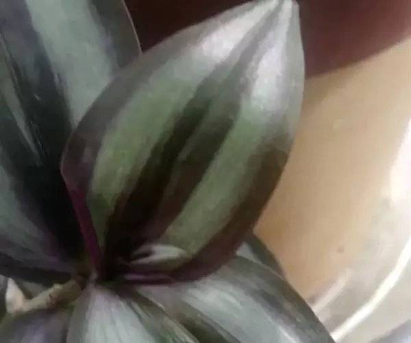 叶互生,无柄,椭圆状卵圆形或长圆形,先端尖锐,基部钝,全缘,长5-7厘米、宽3-4厘米;表面紫绿色或杂以银白色条纹,中部和边缘有紫色条纹,叶背紫红色;叶鞘长0.8-1.2厘米、宽0.5-0.8厘米,薄,膜质,长在节嘴具缘毛,或无毛或疏生柔毛。