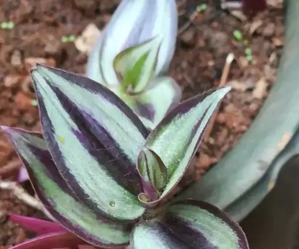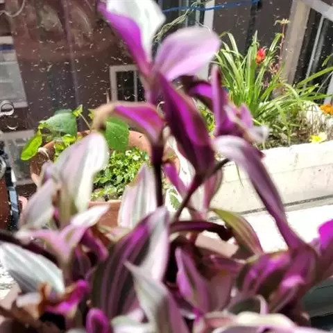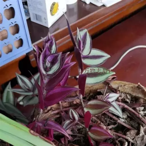 吊竹梅(学名:Tradescantia zebrina Bosse)是鸭跖草科常绿草本植物,茎柔弱质脆,匍匐地面呈蔓性生长。叶互生,无柄;椭圆状卵圆形或长圆形、背面紫色,通常无毛,全缘。花聚生于叶状苞内;花瓣玫瑰粉红色。果为蒴果。花期6-8月。
