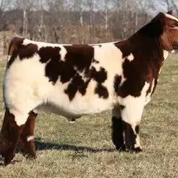 西门塔尔牛是偶蹄目牛科牛属哺乳动物。 体躯长,呈圆筒状,肌肉丰满;头较长,面宽,颈长中等,…