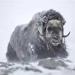 麝牛,是偶蹄目牛科麝牛属哺乳动物。麝牛体型大,但低矮粗壮,头大,吻部宽,眼小;雌雄均具角,四肢短粗,…