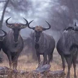 非洲野水牛:共有5个亚种。头体长2.1-3.4米,身高1-1.7米,体重300-900千克。胸膛宽…