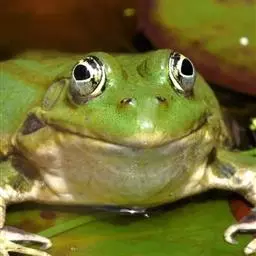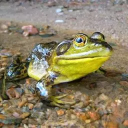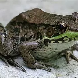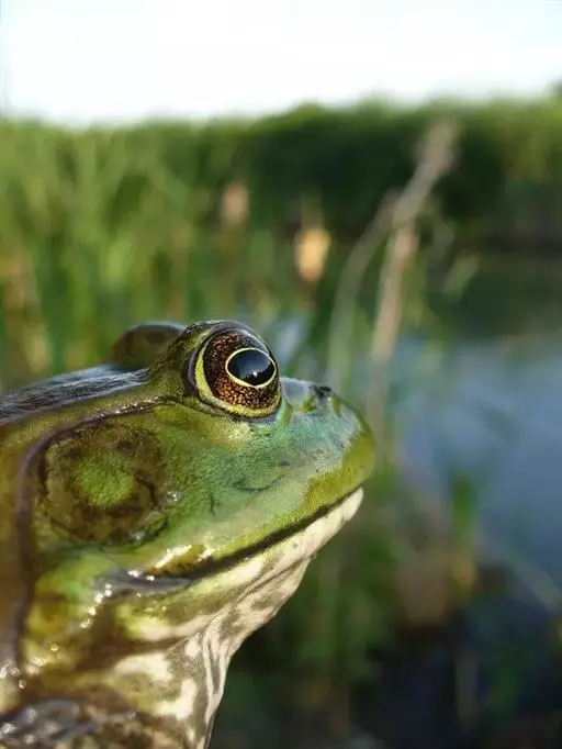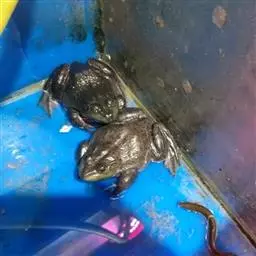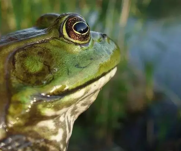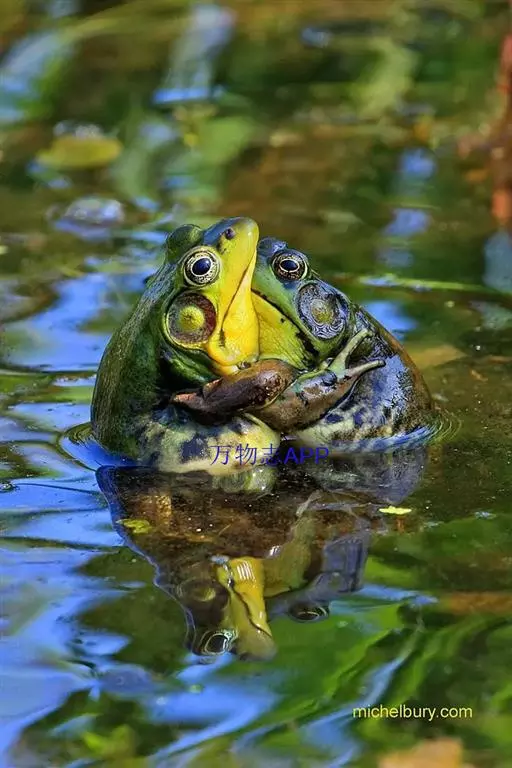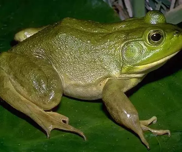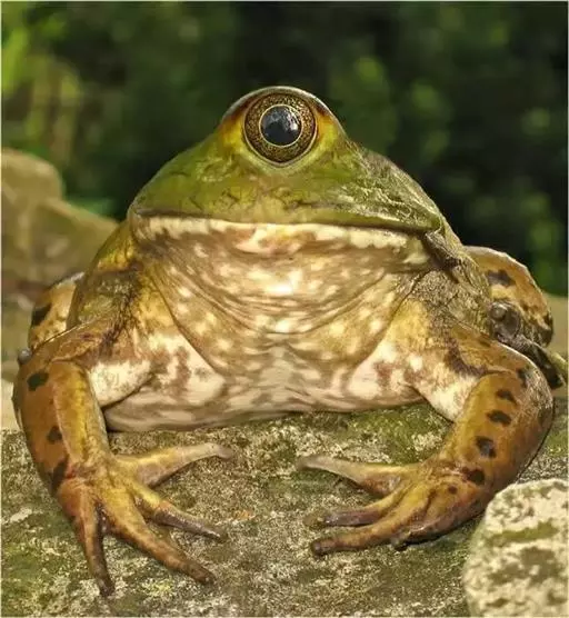 牛蛙 原产于北美,因其鸣叫声宏亮酷似牛叫而得名。1959年牛蛙从古巴引入我国,九十年代左右开始在我国被大范围推广养殖。近年来,牛蛙已成为我国水产养殖重要的名特水产品之一。