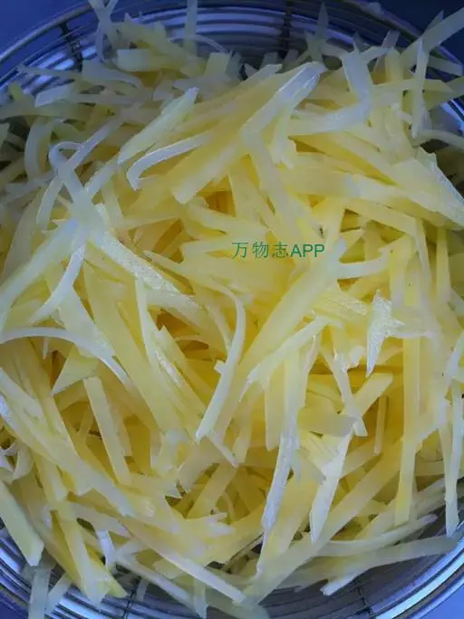 2.土豆刮皮,切片切丝。
