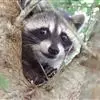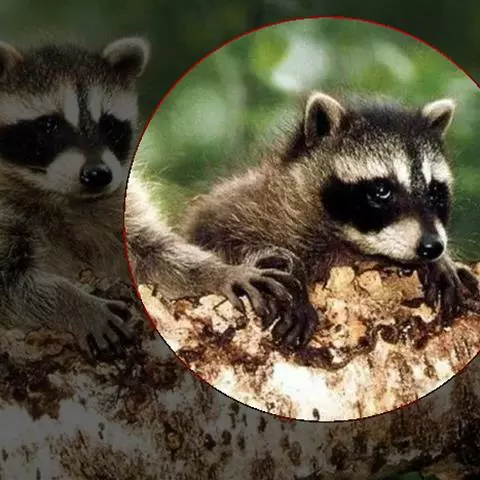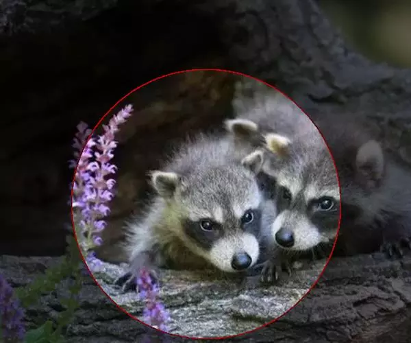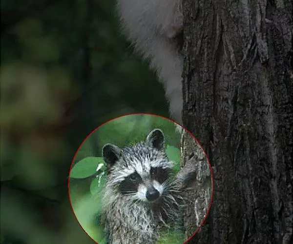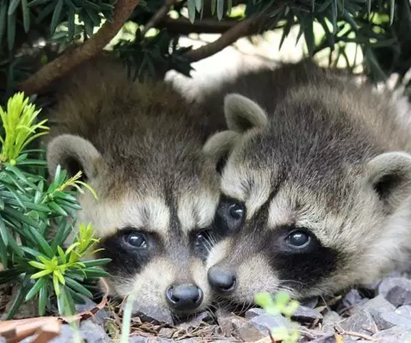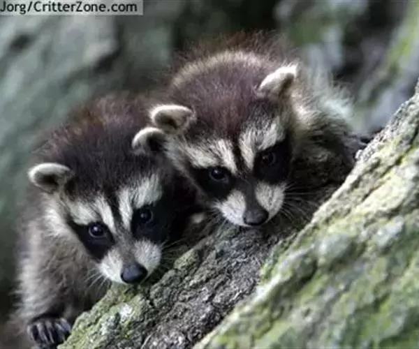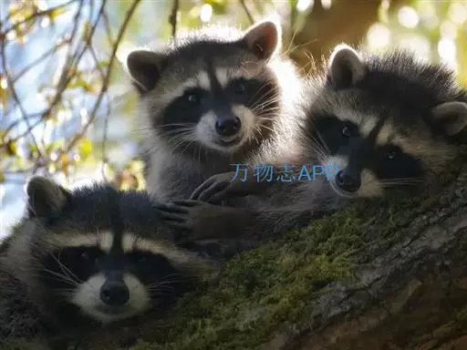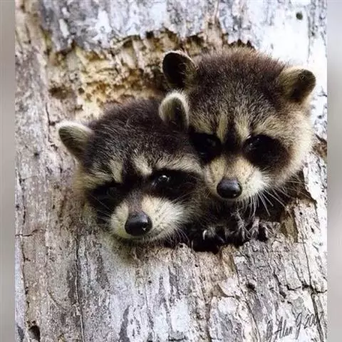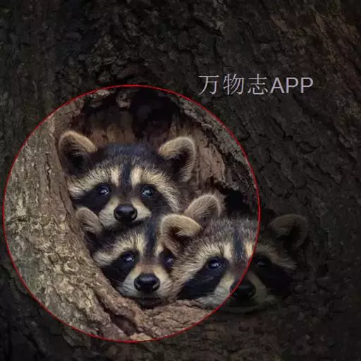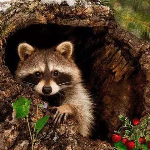 树洞里的小浣熊 浣熊只在繁殖期才会成对。公浣熊会同时与几头母熊交配,但母熊一般只接受一位求偶者。平时温驯安详的公熊在交配季节常常会互相叫嚷和厮打。
