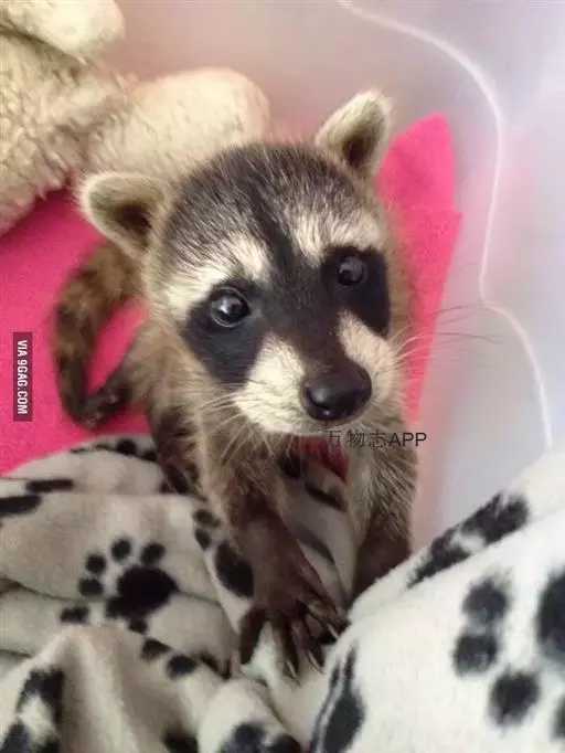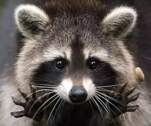 浣熊最大的特征是眼睛周围的黑色区域,与周围的白色的脸颜色形成鲜明对比。耳朵略圆,上方为白色毛,通常颜色深浅的灰色,也有部分为棕色和黑色、淡黄色,及罕见的白化种。越冬时,皮毛会增长到2~3cm。 前后脚有五趾,脚趾常分,能抓住东西,口中原本是裂肉齿,进化成能咬碎东西的牙齿。