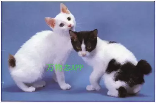 日本短尾猫,又名日本截尾猫。这种猫是由于基因突变而产生的品种。日本短尾猫在日本本土已有一千年左右的历史,有人认为它是1000多年前由中国或朝鲜传入日本的。日本短尾猫的尾巴仅长10厘米左右,与马恩岛猫都是尾巴最短的猫品种。日本短尾猫中以三色猫最为受欢迎,但红白猫、白猫也很多。招财猫的样子即来自于日本短尾猫。