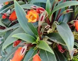 袋鼠花(学名:Nematanthus gregarius D.L.Denham)是苦苣苔科,袋鼠花属多年生草本植物,具有较短的根茎,株高可达120厘米,颜色视品种不同而着生,茎粗可达4厘米左右。叶片扁平且丛生,基生叶色暗绿,总状花序,唇形花冠,因管状外形上附着天鹅绒似的绒毛,酷似袋鼠爪而得名。花色繁多、绒毛状,花期长,春天到夏天都能开花。
