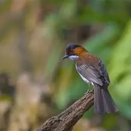 栗背短脚鹎,体长18-22厘米。上体栗褐,头顶和羽冠黑色。背栗色、翅和尾暗褐色具白色或灰白色羽缘。…