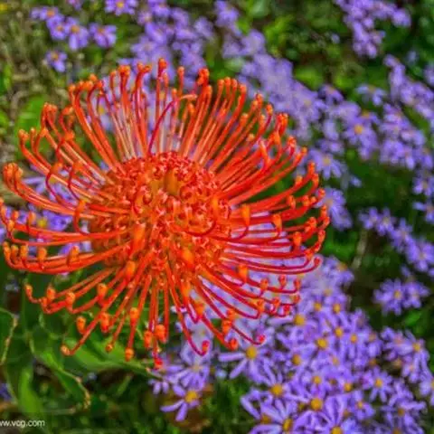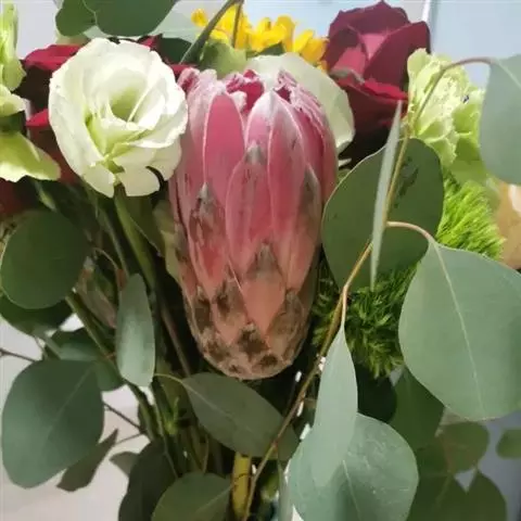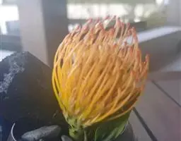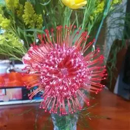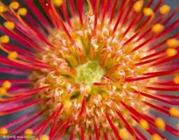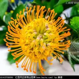 帝王花,山龙眼科帝王花属多年生常绿灌木植;茎干粗壮,叶色翠绿光亮;花朵呈圆球状;其苞片有的完全打开,…