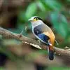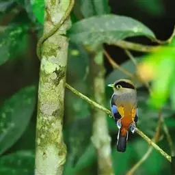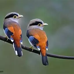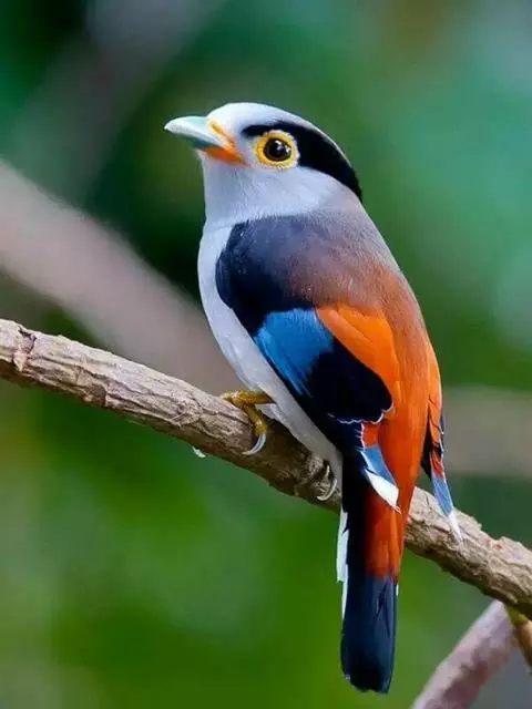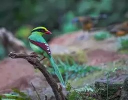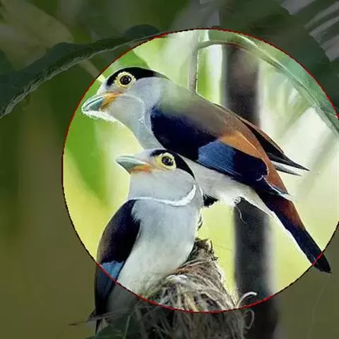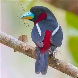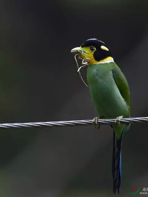 长尾阔嘴鸟是雀形目阔嘴鸟科的鸟类,体长约25厘米,是绿色阔嘴鸟。形长的楔形尾蓝色,喉及脸黄色,顶冠…