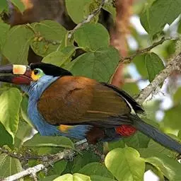 银胸丝冠鸟是雀形目阔嘴鸟科的鸟类,在全世界共分化为10个亚种。体长16-18厘米。嘴宽阔、天蓝色,…