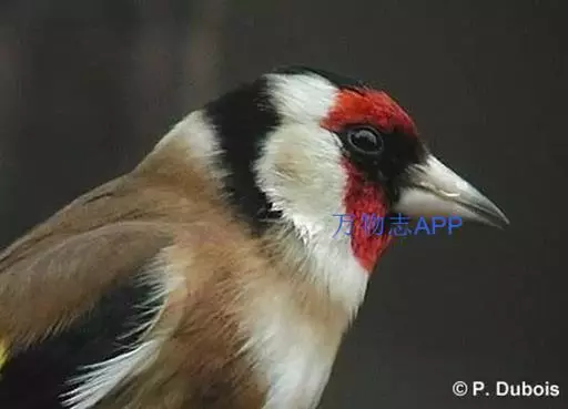 红额金翅雀(学名:Carduelis carduelis):共有14个亚种。小型鸟类,体长12-14厘米。额、脸颊和颏朱红色,眼先和眼周黑色,在淡色的头部极为醒目。上体灰褐或乌褐色,尾上覆羽白色,两翅和尾黑色,翅上有黄色斑。下体喉、胸灰褐或乌褐色。其余下体白色。