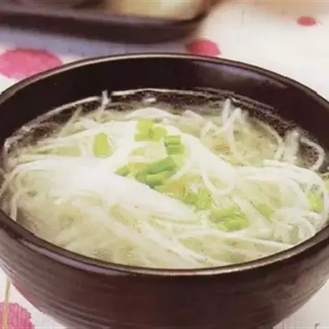 原料:冬瓜100克,瘦羊肉80克,枸杞3克,生姜10克,葱10克。