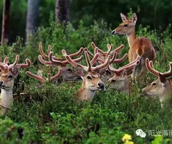 坡鹿喜食青草和嫩树枝叶,为食草性动物。栖息在丘陵草坡地带,分布于东南亚及中国的海南岛,为国家一级保护动物。