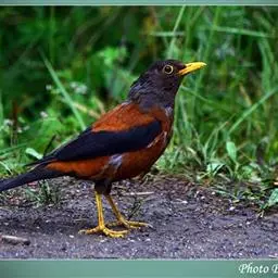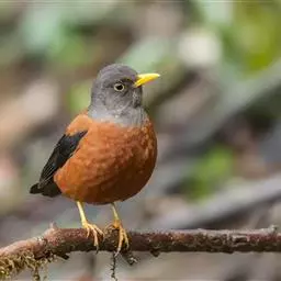 灰头鸫:中型鸟类,体长23-27厘米。整个头、颈和上胸褐灰色,两翅和尾黑色,上、下体羽栗棕色。…