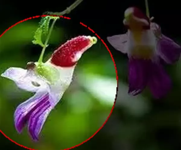 龙虾花是一种珍贵的草本植物,它春天发芽,夏天开花,秋天结实,冬天落叶。花的旗瓣和翼瓣组合似虾头,唇瓣囊状似虾身,花基部延长内弯(或下弯)似虾尾。春发芽,夏成苗,秋开花。虽然龙虾花隶属于“凤仙花属”,可能是由于地理位置和环境的差异,其形貌特征与普通的凤仙花大相迥异。活龙虾花花色艳丽,颜色丰富,有鲜红的,红如珊瑚;有金黄的,黄如琥珀;紫色的紫如葡萄。因花瓣组合形似龙虾而得名。虾头上有两根卷须,虾身有一道一道的花纹,花柄像一根青丝线,俗名叫“青丝吊龙虾”。