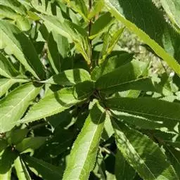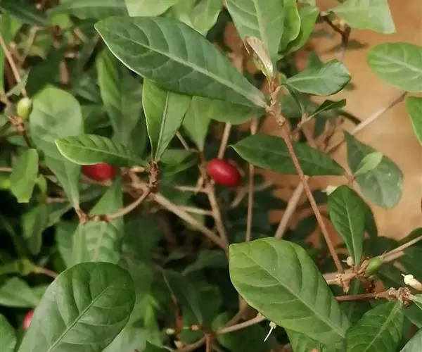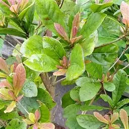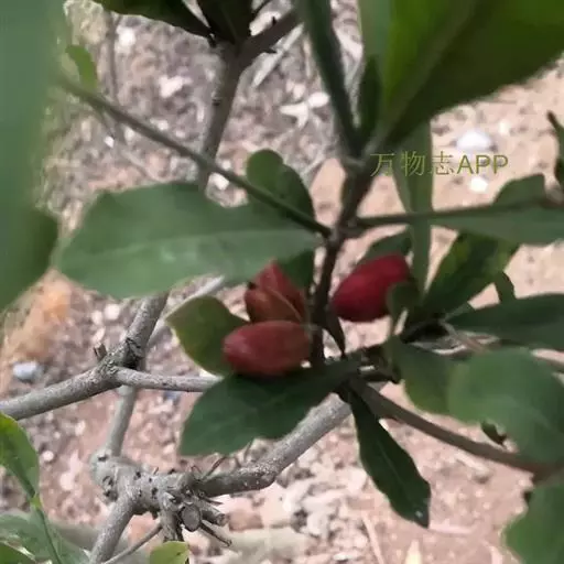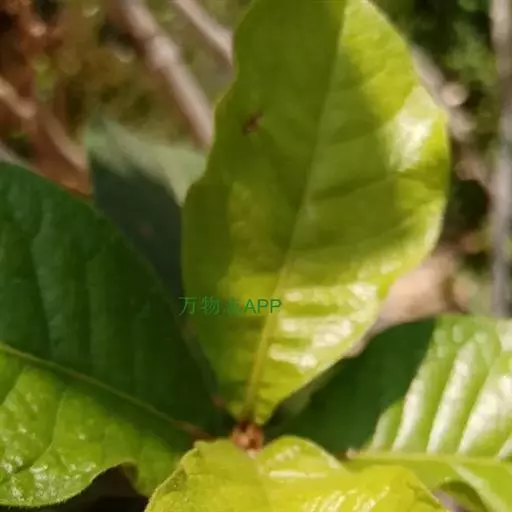 多年生常绿灌木,树高3-4.5米,枝、茎灰褐色,枝上有不规则的网线状灰白色条纹,分枝部位低,枝条数量多,若温度适合全年可抽发新梢,呈浅红色,叶枝端簇生,每簇有叶5-7片,叶互生,琵琶形或倒卵形,叶面青绿,叶背草绿,革质,长3.6-7.6厘米、宽2.7-3厘米,叶柄短、0.5厘米左右,叶脉羽状。
