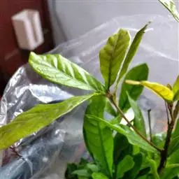 选择2-3年生,直径0.5厘米以上的健壮枝条,时间选在5-7月高温高湿季节进行压条处理。高压繁殖前3-4天对高压部位进行环剥,宽度为枝条直径的2-3倍,深达木质部,将配好的萘乙酸(NAA)或生根粉(ABT)2号药液均匀喷洒在栽培机质上(椰糠:腐殖土为1:2),基质湿度以手捏成团不散为宜,用沾有生根水的棉花或湿布在环剥部位擦一遍,然后用配好的基质将环剥部位裹上,再用塑料薄膜固定、包扎。每10天检查1次水分情况,发现变干时可用注射器注入清水,60-70天可生根,生根率可达80%。