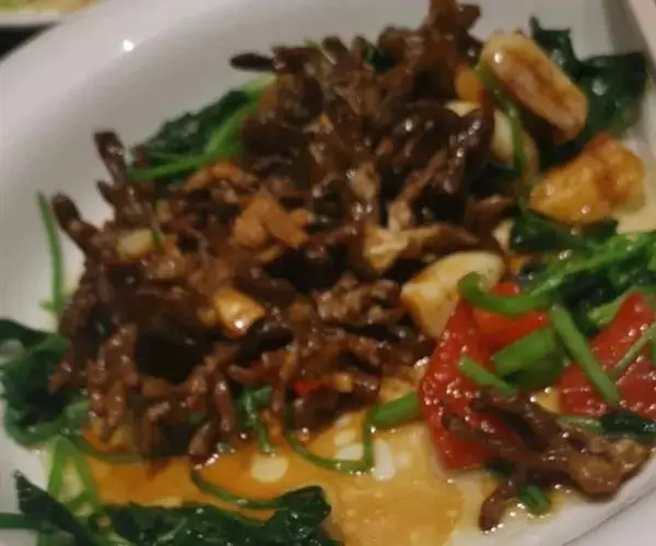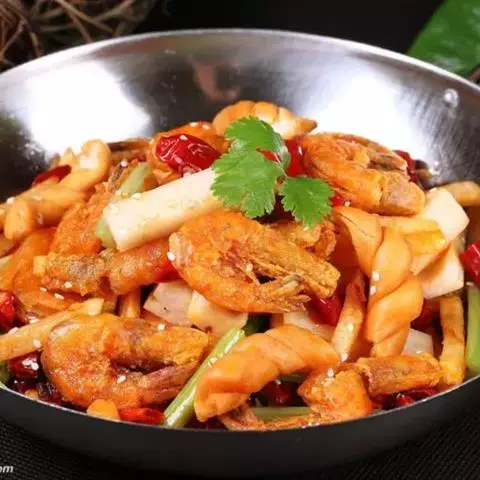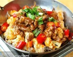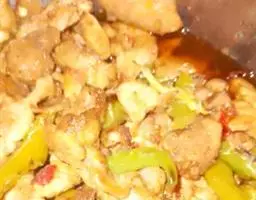 9、加入腰花同炒。