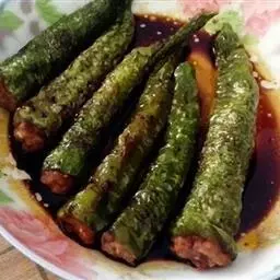8、加入朝天椒和杭椒。